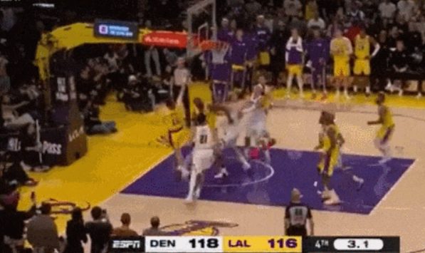 常规阶段收尾,里夫斯故意罚球不中,成功抢到进攻篮板并命中抛投拯救了湖人拖进加时赛。