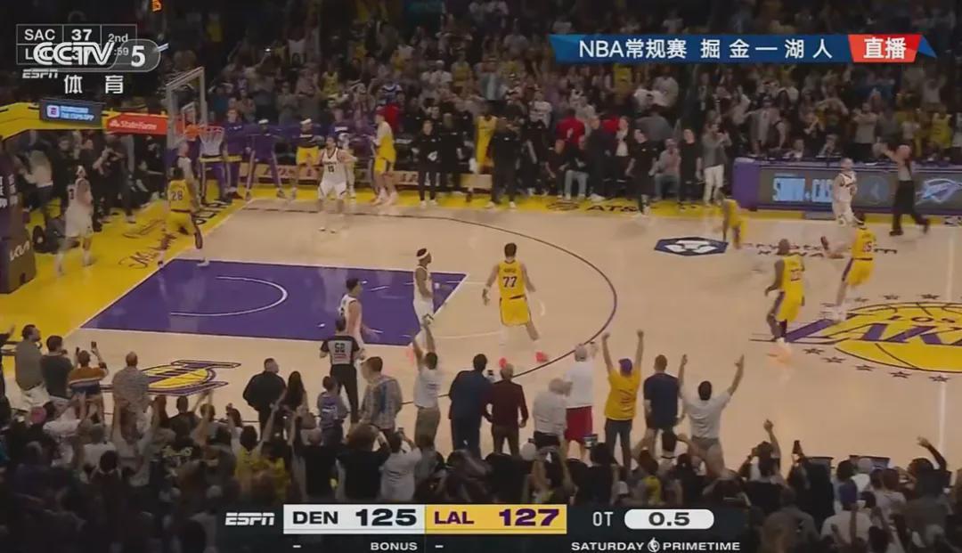 全场打完,湖人在主场拒绝掘金17分大逆转,127-125惊险击败对手。